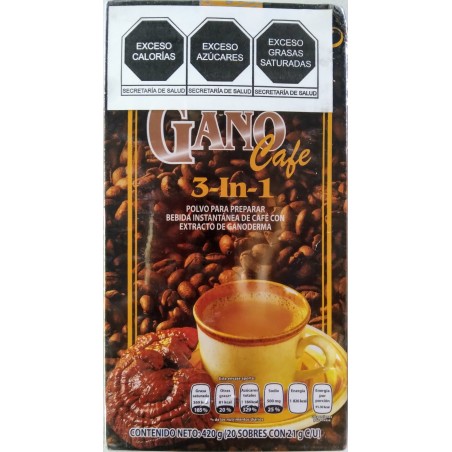 Gano Café 3 en 1 es una deliciosa mezcla de café gourmet enriquecido con Ganoderma Lucidum, endulzante natural y sustituto de crema no láctea.